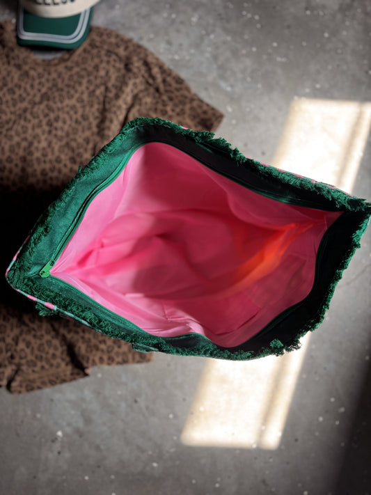 Checkered Frayed Tote
