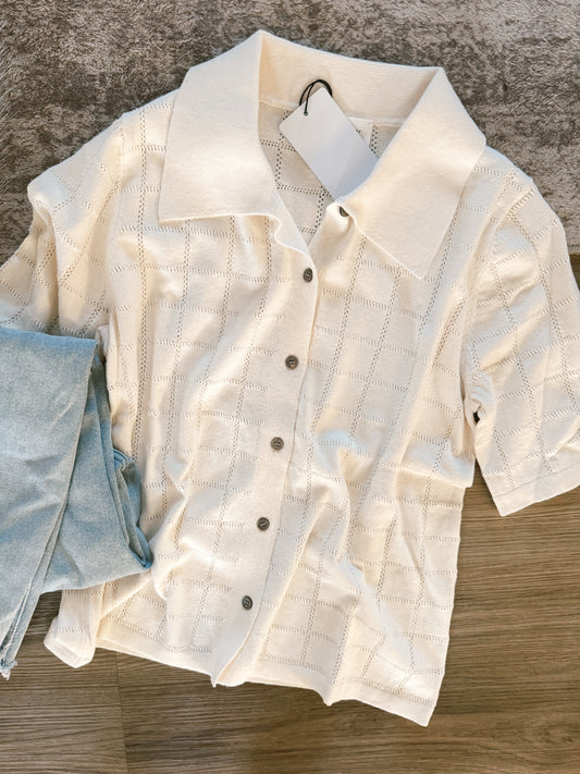 Checkered Hollow Out Polo Top